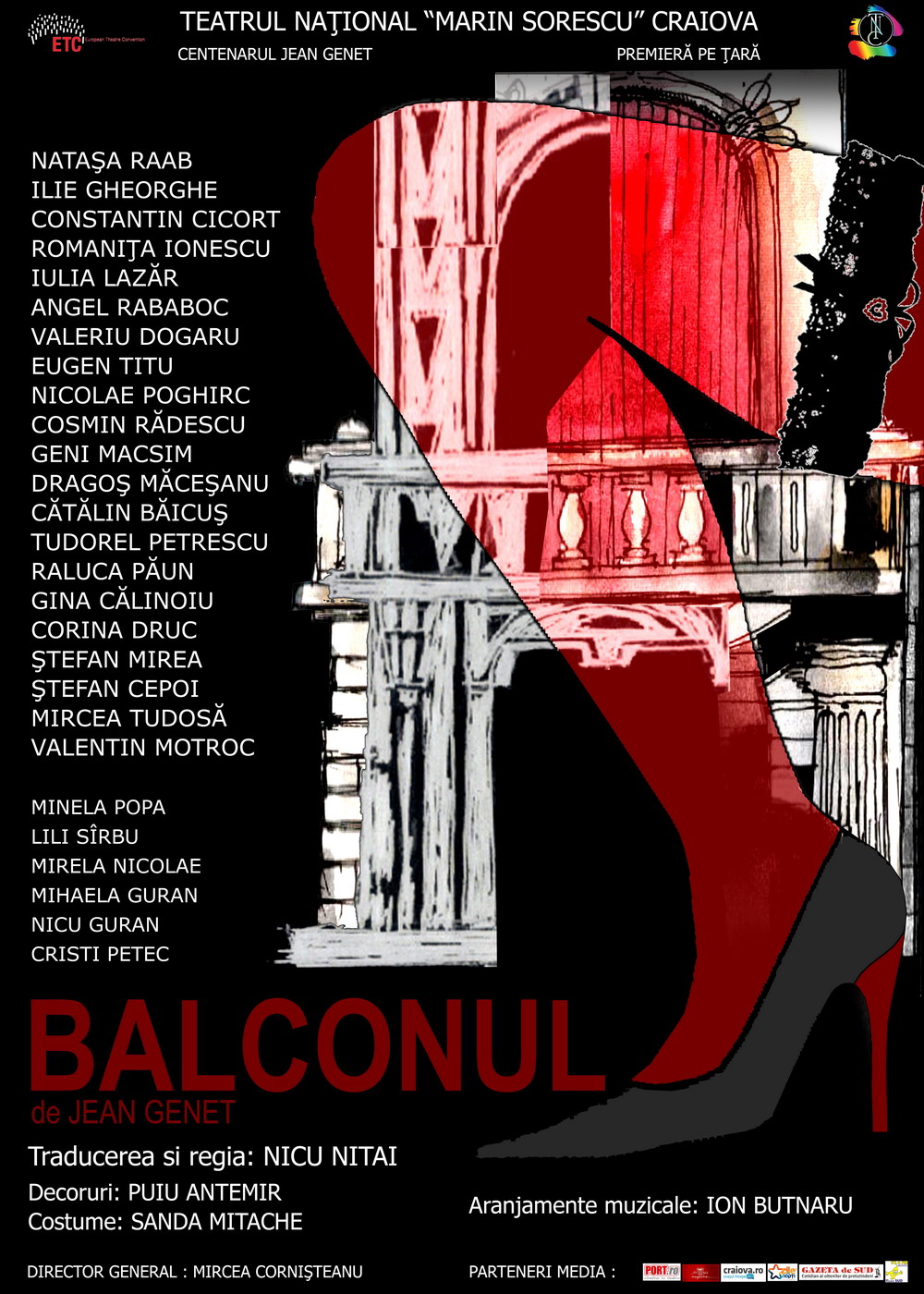 Naţionalul craiovean şi-a încheiat stagiunea cu o premieră: Balconul, de Jean Genet, în regia lui Nicu Nitai. Ca text, piesa are substanţă din belşug, are „vână”, deschideri pe paliere interpretative multiple, consonanţă cu realul imediat. E un text ironic, muşcător de-a dreptul în multe locuri. Este o piesă despre iluzii, despre putinţa de a te minţi că poţi ieşi din tine, fie şi pentru un interval redus. Unde se pot întâmpla toate acestea mai bine decât într-un bordel, într-o casă de toleranţă. Iar toleranţa pare a fi vectorul ordonator al Balconului. Toleranţa de a-l accepta pe celălalt nu aşa cum este, ci aşa cum ar vrea să fie. În bordelul doamnei Irma se desfăşoară fantoşa unei umanităţi aflate în pragul sucombării. Oamenii sunt umbra dorinţelor lor, pasiunea este subordonată asumării unui rol. Confruntarea cu realitatea nu este atât de violentă pe cât s-ar putea crede. Dimpotrivă: masca îşi confecţionează personajul, astfel încât lumea devine o scenă enormă, cu roluri interşanjabile. Este parcă punerea în practică a uneia dintre afirmaţiile lui Eliade, referitoare la istoria religiilor: „Eşti ceea ce pretinzi că eşti.” În clivajul dintre fond şi formă, dintre aparenţă şi esenţă, iau naştere dramele reale, ale fetelor angajate în bordel, singurele care nu se automistifică. Iluzia se construieşte, se menţine, se pliază pe identificarea personală. Un spectacol al tragicului căutării de sine sub diferite forme sau nuanţe, al imposibilităţii situării identitare.